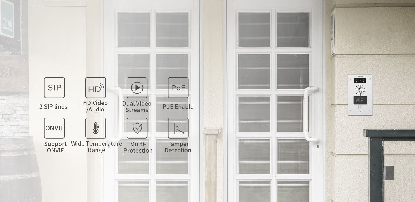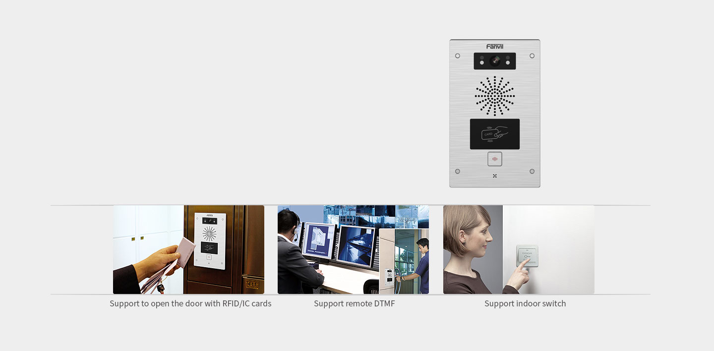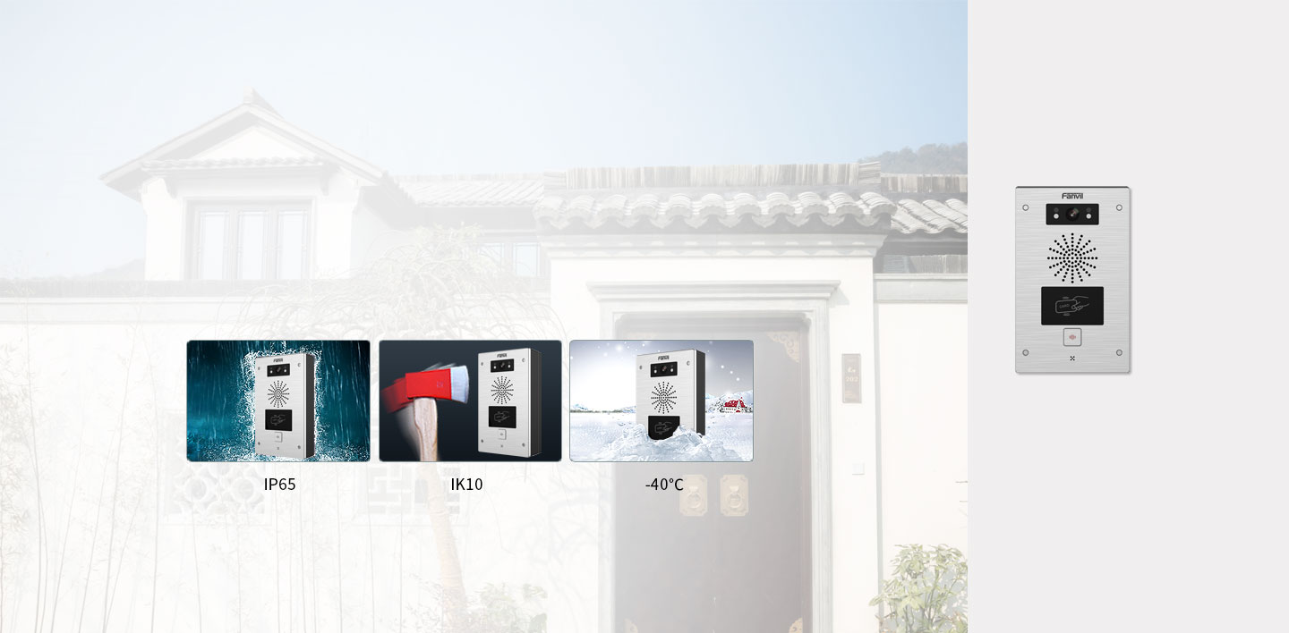 SIP video door phone i32V is designed for outdoor environment with high reliability, HD Audio/Video, IP65/IK10 protection grade and the wide temperature range from -20℃ to 50℃. It combines with access control, audio/video intercom and broadcasting for smoother, safer, clearer communication.