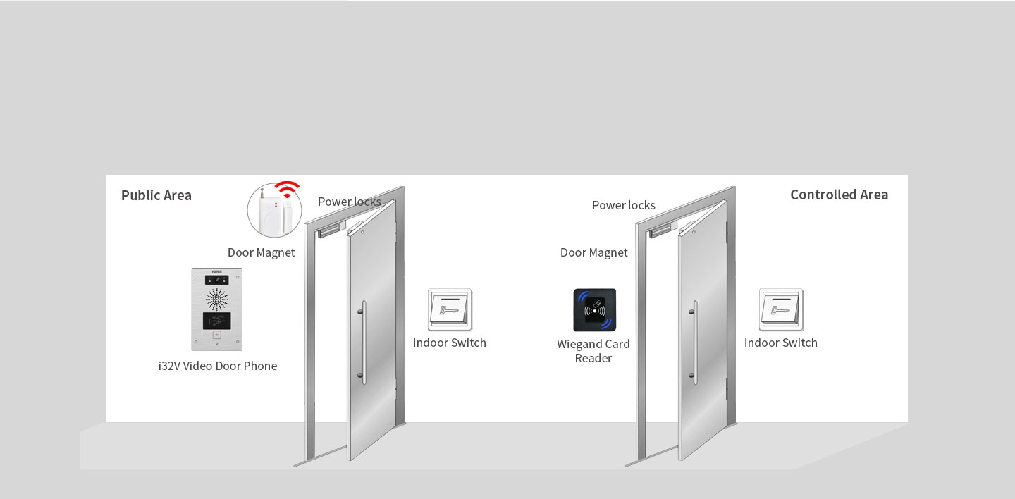 Support External Door Magnetic Detector and Wiegand Card Readeri32V can be connected to 2 door magnetic detectors which will make an alarm if the door can not be closed after the timeout.