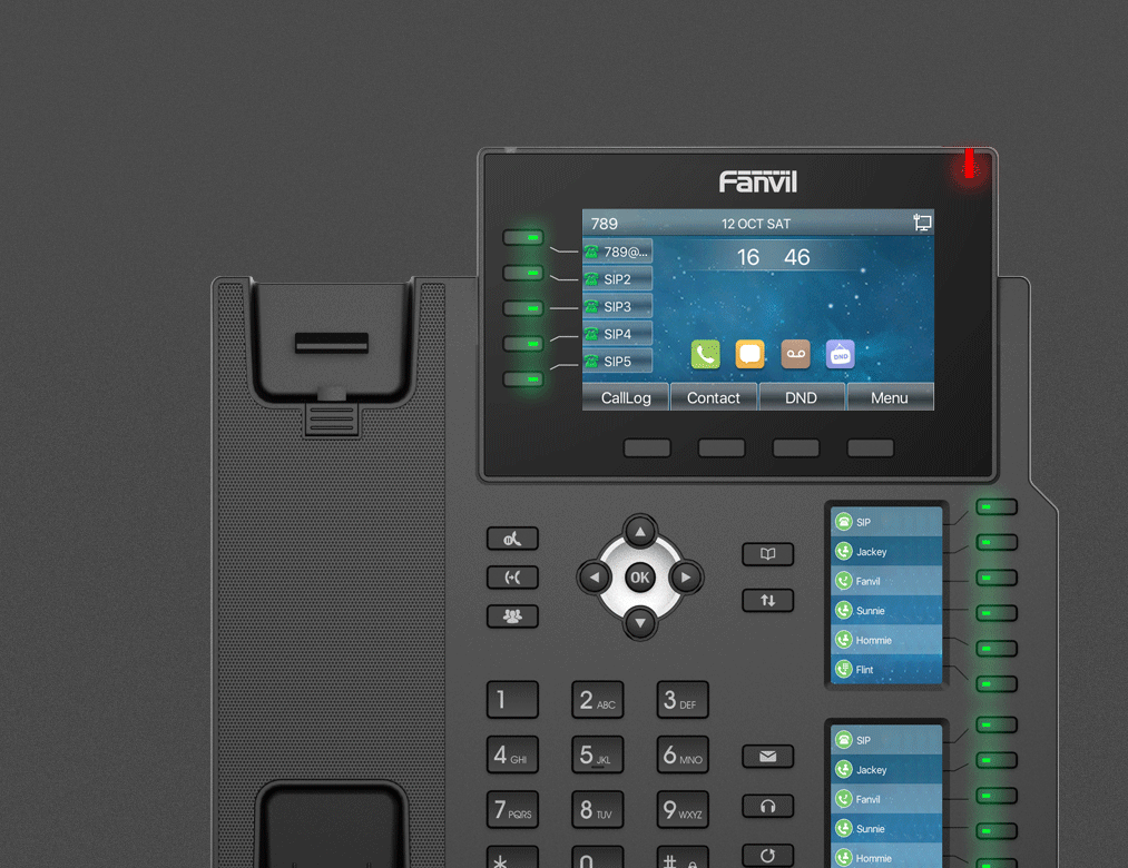 Благодаря трехцветным дисплеям, новым линейным клавишам со светодиодной подсветкой и встроенному Bluetooth, Fanvil X6U обеспечивает прямой доступ к инструкциям, стремясь обеспечить большую гибкость, производительность и превосходит различные требования бизнеса. Динамик Harman и широкополосный кодек G.722 и Opus в этом устройстве обеспечат вам захватывающее звучание высокой четкости в сети как в диапазоне высоких, так и в диапазоне низких частот.