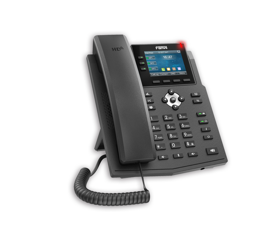 Fanvil X3U Enterprise IP Phone · HD audio with wideband codec G.722 and Opus · High-definition 2.8-inch 320x240-pixel color display · 6 SIP lines · 3 line keys with LED light · Dual Gigabit port, PoE integrated · Support EHS wireless headset · Support IPv4 , IPv6 protocol |