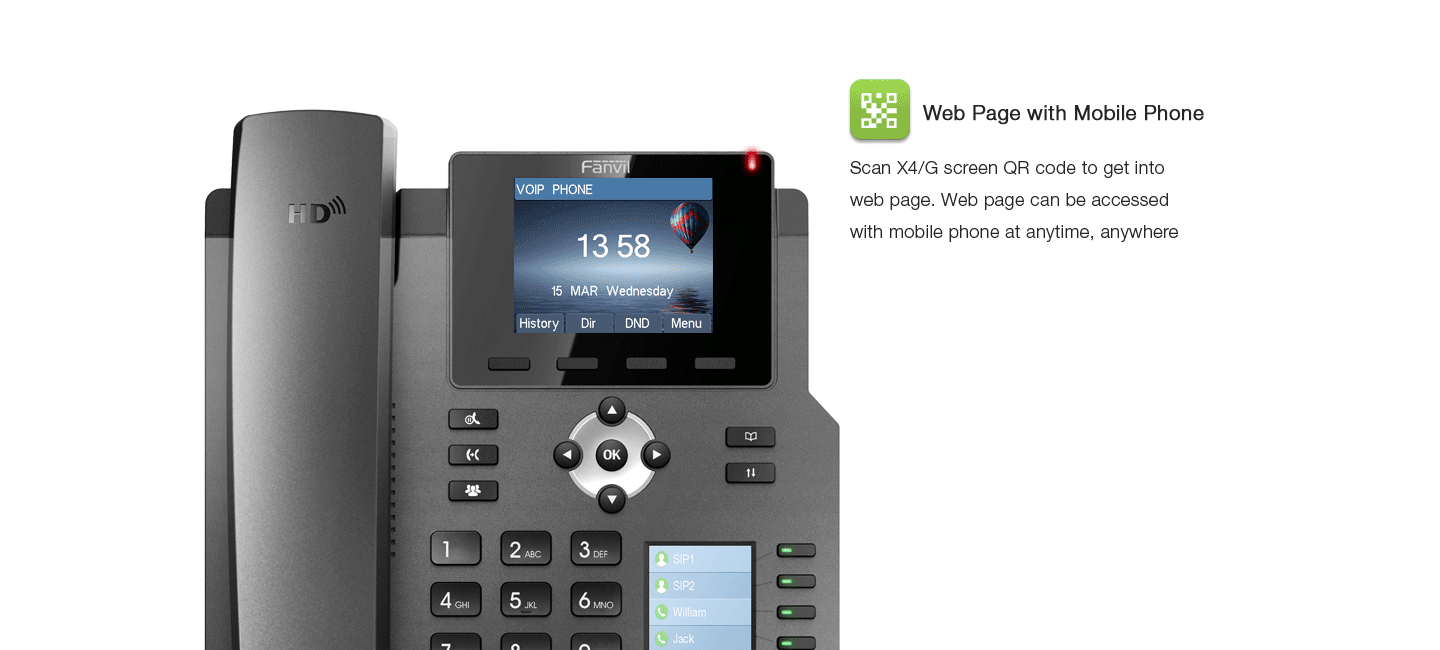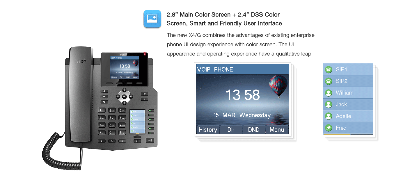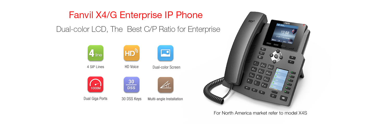 The X4/X4G is a feature-rich sip phone for business. The 4-Line IP Phone has been designed by pursuing ease of use in even the tiniest details. Dual 10/100 Mbps(X4G: 10/100/1000 Mbps) network ports with integrated PoE are ideal for extended network use. Delivering a superb sound quality as well as rich visual experience. With second DSS color screen, the IP Phone supports up to 30 DSS keys which improve work efficiency. Using standard encryption protocols to perform highly secure remote provisioning and software upgrades.