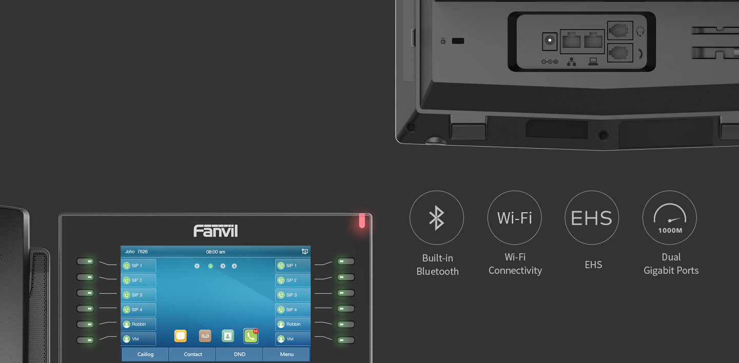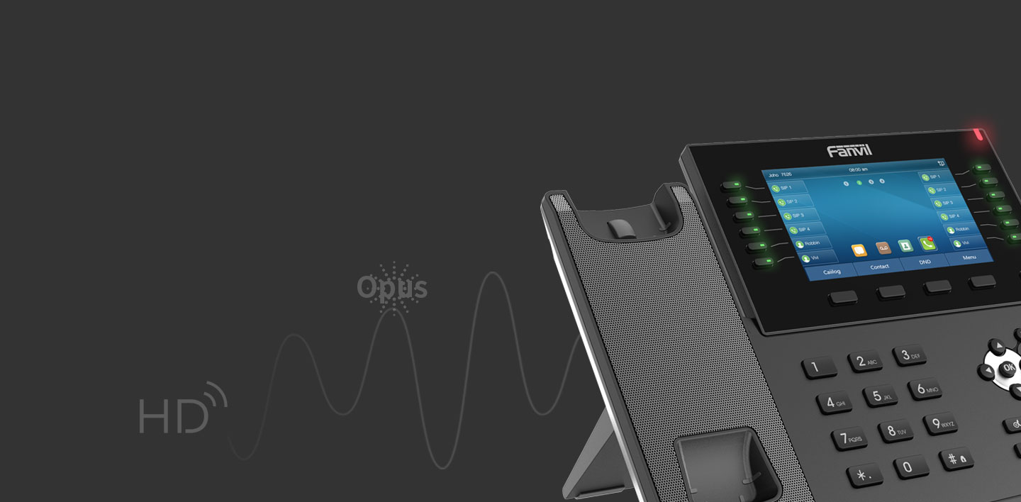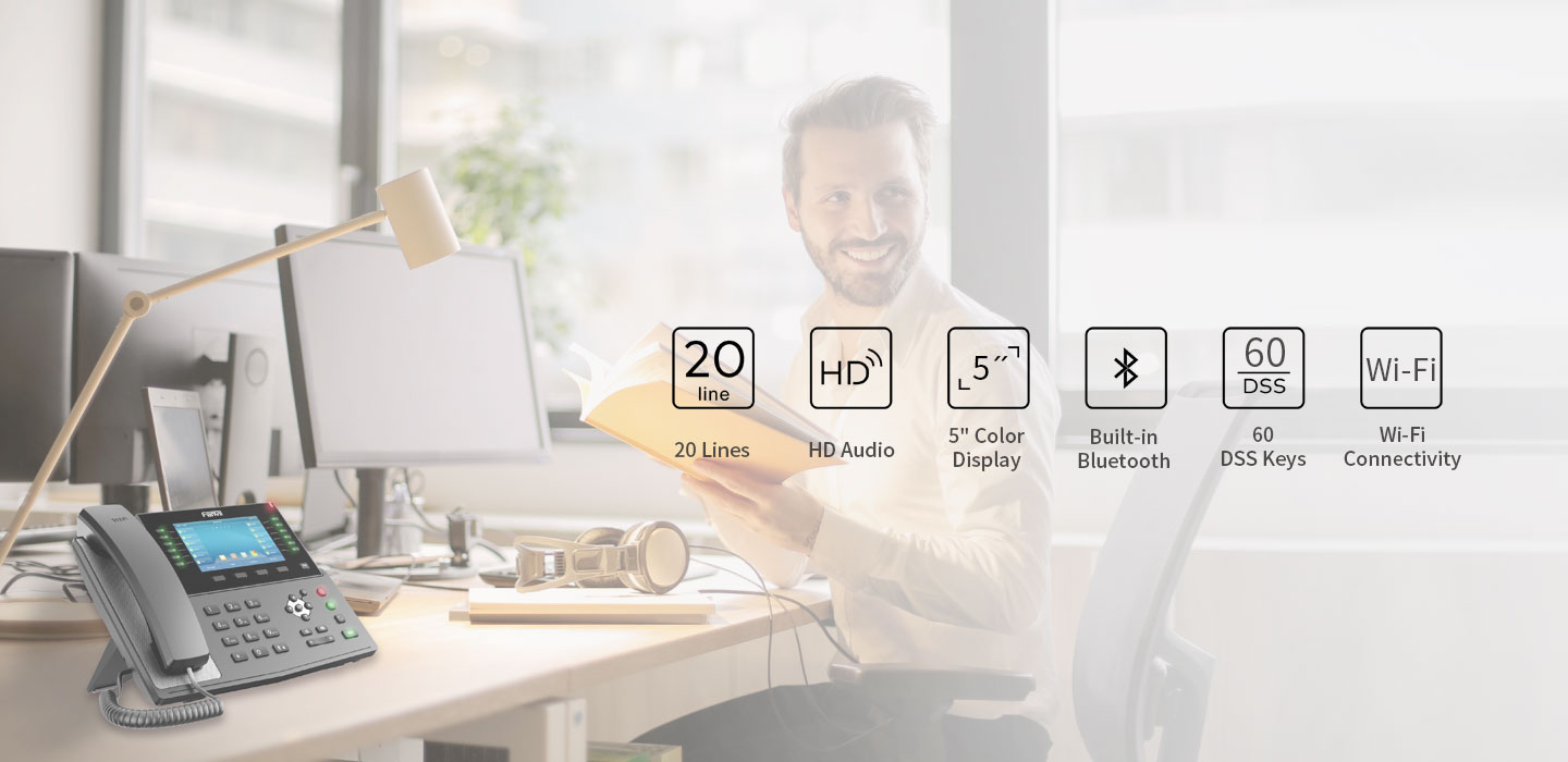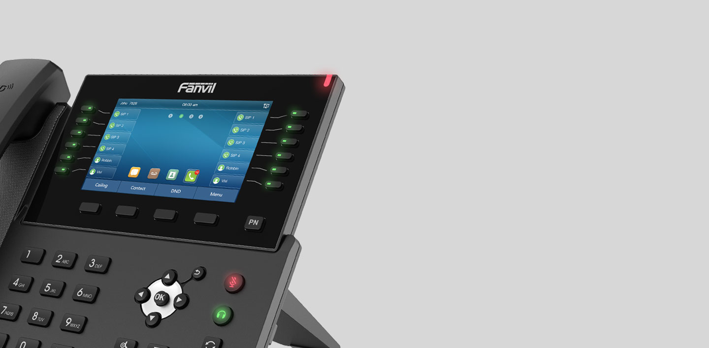 With a modern, clear design, Fanvil X7C is a high-end enterprise IP phone for business users who need immediate access to all of their important information. In addition to a 5-inch high-resolution color screen, the telephone also features 20 SIP lines, HD audio with Opus support, up to 60 DSS keys (12 physical), Built-in Bluetooth, Wi-Fi connectivity and more!