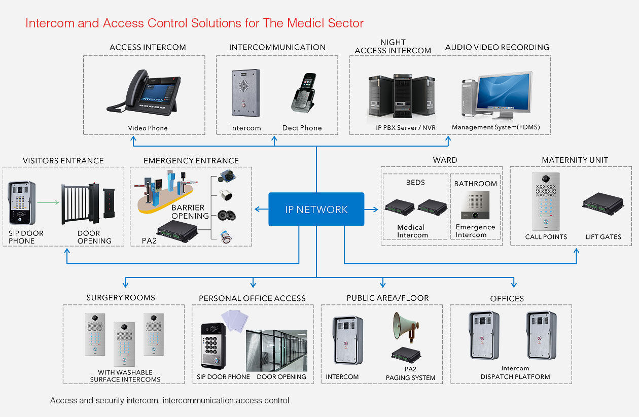> Complete inter-department intercommunication systems(admissions, operation room, laboratories, emergency, etc.)