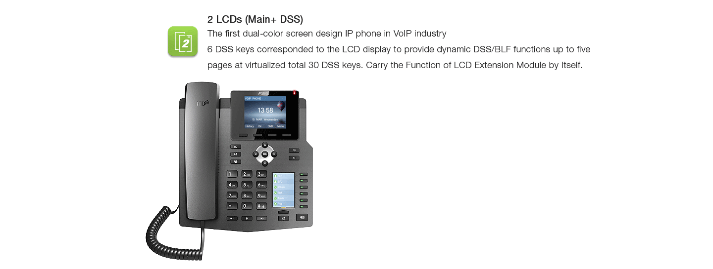The X4/X4G is a feature-rich sip phone for business. The 4-Line IP Phone has been designed by pursuing ease of use in even the tiniest details. Dual 10/100 Mbps(X4G: 10/100/1000 Mbps) network ports with integrated PoE are ideal for extended network use. Delivering a superb sound quality as well as rich visual experience. With second DSS color screen, the IP Phone supports up to 30 DSS keys which improve work efficiency. Using standard encryption protocols to perform highly secure remote provisioning and software upgrades.