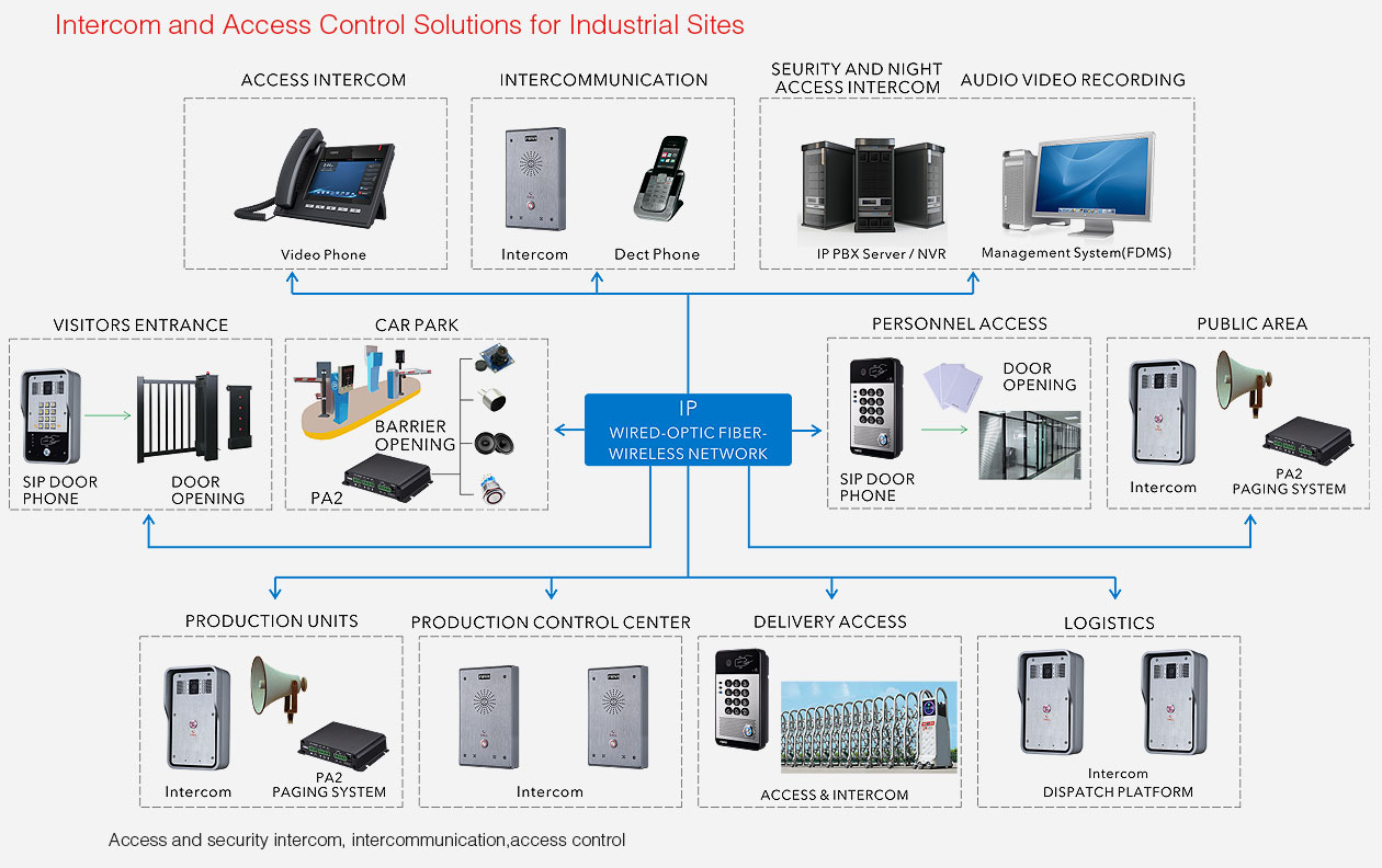 > Security intercom systems(fire alarms, emergency calls)